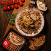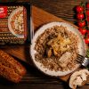 Состав: каша гречневая, шампиньоны жареные, жареное куриное филе, лук репчатый жареный, соль пищевая, усилитель вкуса и аромата Е621, специи (лук, перец черный). Пищевая ценность: 100г продукта содержит: Белок не менее – 18г.Жир не более – 13,5г. Углеводы – 75,6г. Энергетическая ценность: 495,9 кКал/ 2074,8456 кДж. Хранить при температуре – 18С Срок годности: при температуре хранения – 18 С – 180 суток. Повторная заморозка продукта ЗАПРЕЩЕНА! Продукт не размораживая, разогреть в микроволновой печи 3-5 минут. Дату изготовления и упаковывания смотреть на упаковке.