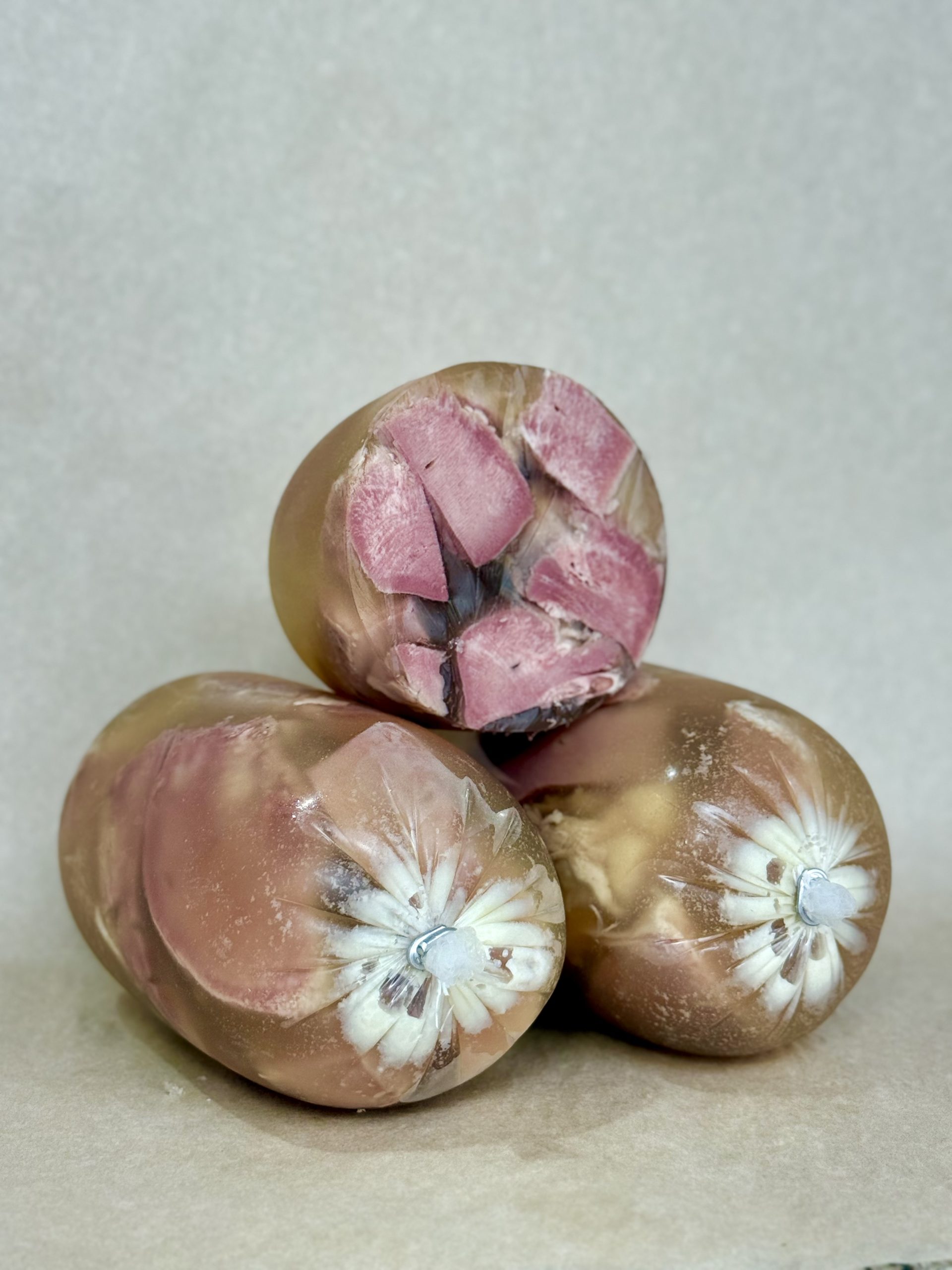 Состав: Язык свиной, вода, желатин, соль поваренная пищевая, перец черный молотый, пряности, экстракты пряностей (с сельдереем), декстроза, стабилизатор: полифосфат Е452, усилитель вкуса и аромата: глутамат натрия 1-замещенный Е621, антиокислитель: изоаскорбат натрия Е316, пищевая добавка для продления сроков хранения регулятор кислотности Е576, агент влагоудерживающий Е325, регуляторы кисл-ти Е262, Е330, Е331. Пищ. ценность в 100г продукции: Белки 10г. Жир 6,5г. Энерг. ценность в 100г продукции: 100 ккал/420 кДж. Условия хранения: При температуре от 0 до +6С, и относительной влажности воздуха не более 75%. Срок годности: не более 30 сут. Дату изготовления и упаковывания см. на упаковке. После нарушения целостности упаковки хранить в холодильнике при t от 0 до 6С не более 3суток. На предприятии используется: злаки, молоко, яйца, орехи бобовые и продукты их переработки.